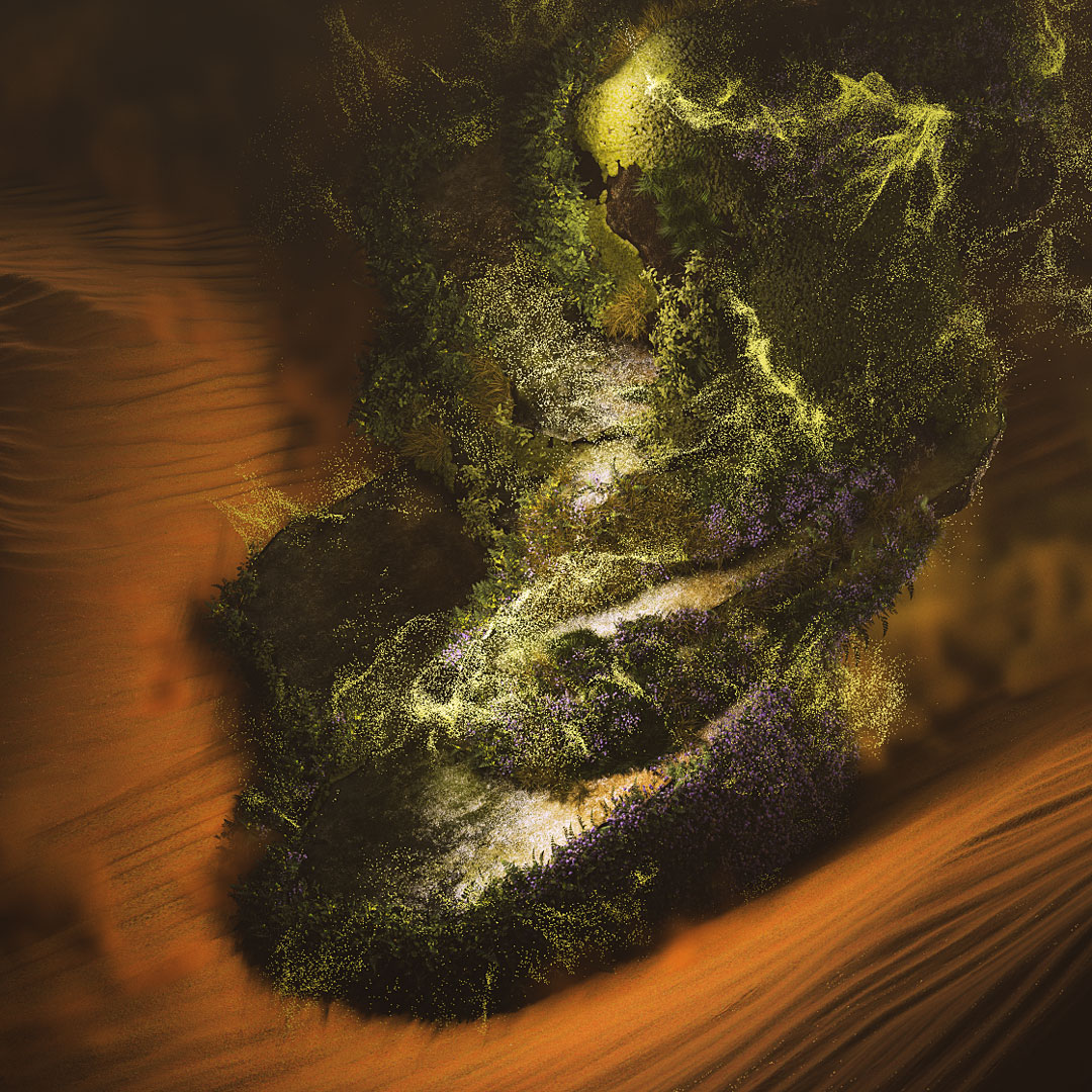 granular fuzz embodies width, freedom, and a bursting nature. It’s bold, organic, and robust, appealing to outdoor enthusiasts, rebellious individualists, and everyday adventurers. we captured the raw, untamed power of nature, blending colours associated with freedom and wide landscapes, as well as rough materials and an untamed feeling, while incorporating cinematic lighting to create a thrilling atmosphere.