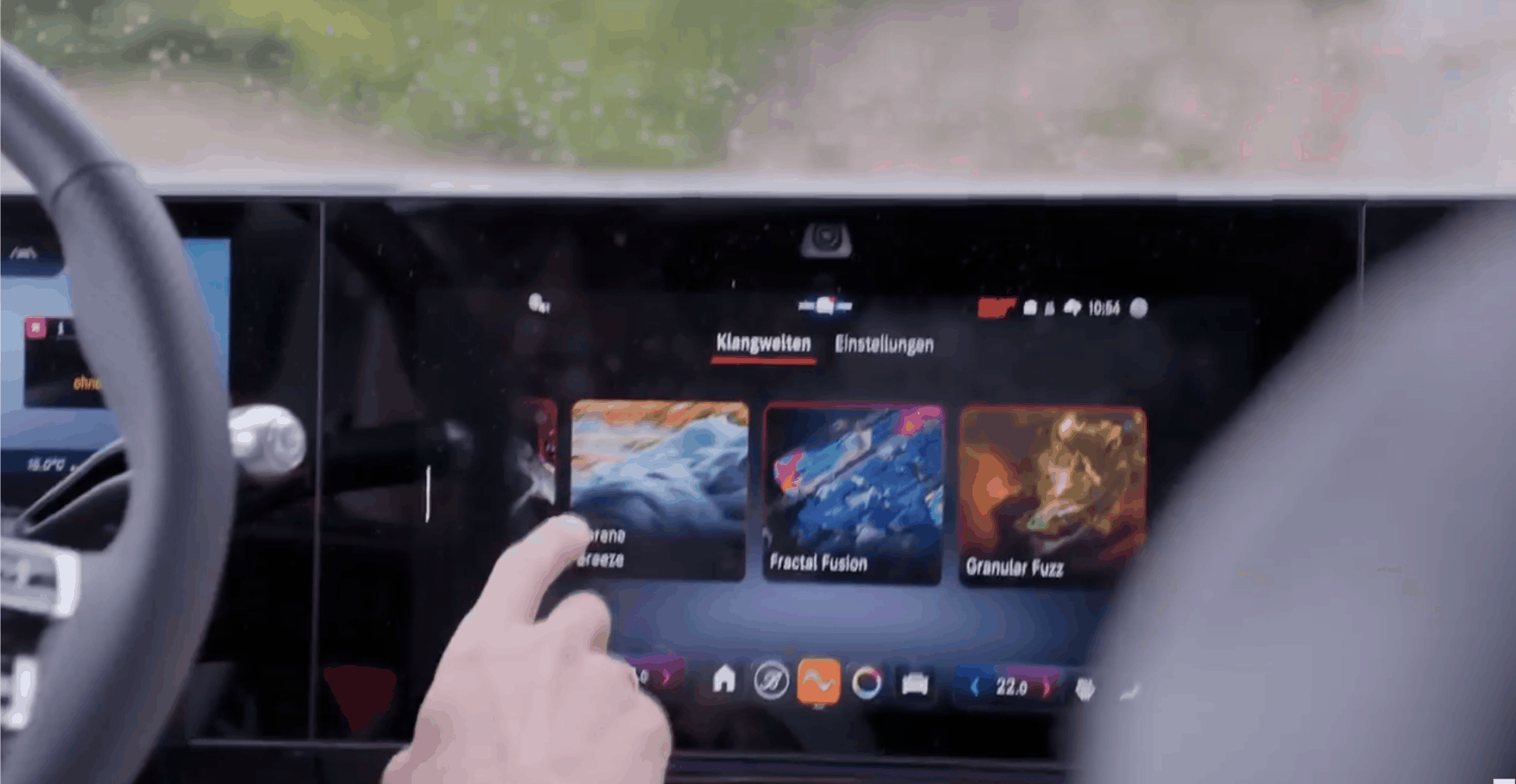 serene breeze brings the sensuous nature and relaxing atmosphere into the vehicle. it’s focused more on the situation and mood than on the user group — designed for a relaxing ride in the evening to calm down from the stress of the day. we created a visual that has a stress-relieving effect when seen, similar to the experience inside the vehicle. to achieve this, we utilized a soft shape language along with natural textures and movements that convey the aspect of empathy.